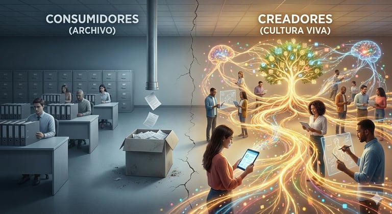 Cuando una empresa convierte a su gente en creadora —no solo consumidora— del aprendizaje, algo cambia: el conocimiento deja de ser un archivo y se convierte en cultura viva. No se trata de producir más contenido, sino de construir ecosistemas de aprendizaje autónomos donde el saber fluya sin fricciones.